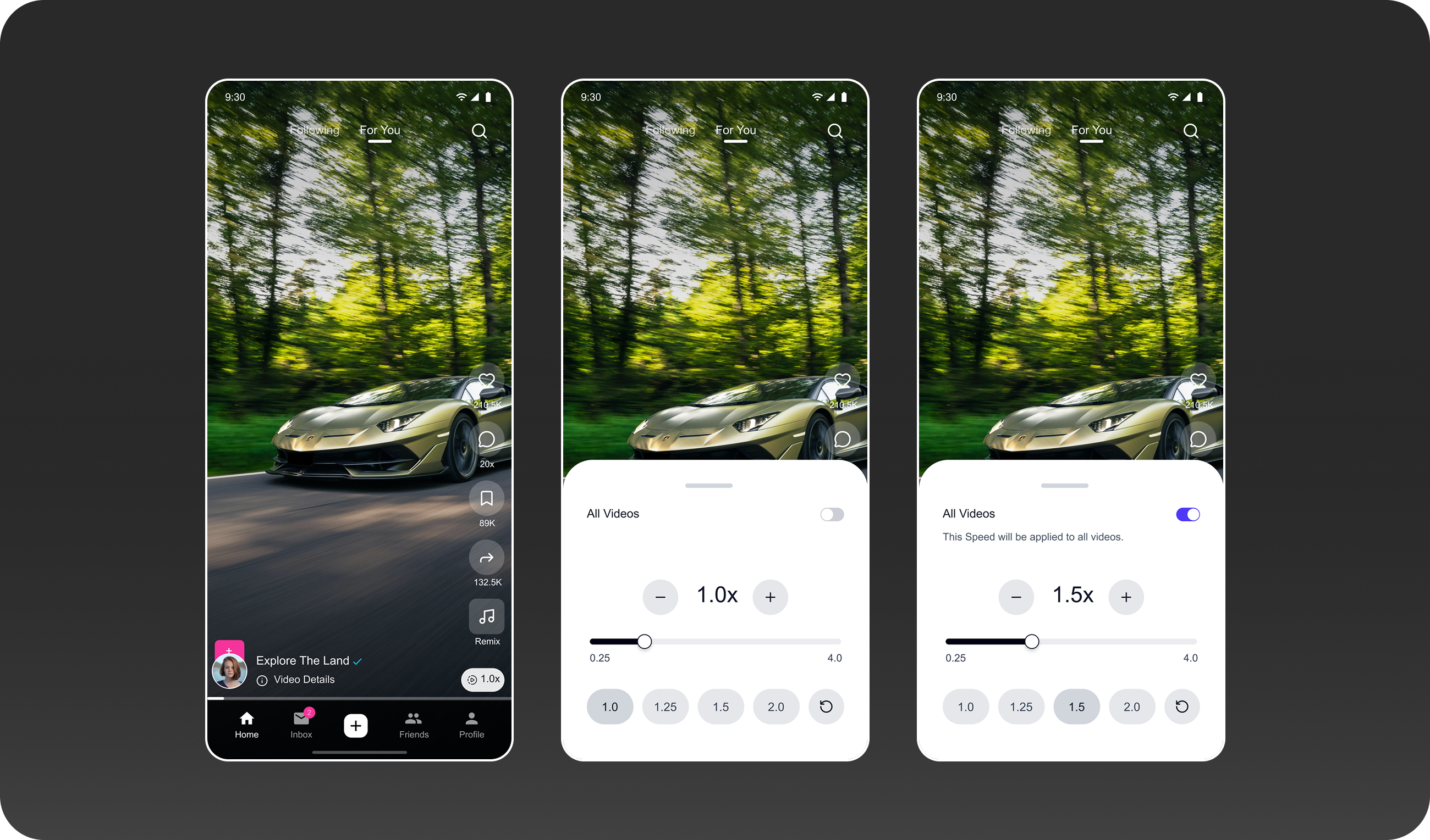 Design an integrated playback speed control that feels instant, intuitive, and fluid within the short-form video experience.